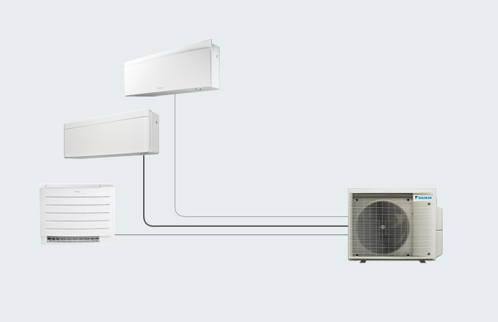 Грејте и ладете повеќе простории со поврзување една надворешна единица со најмногу пет внатрешни единици
