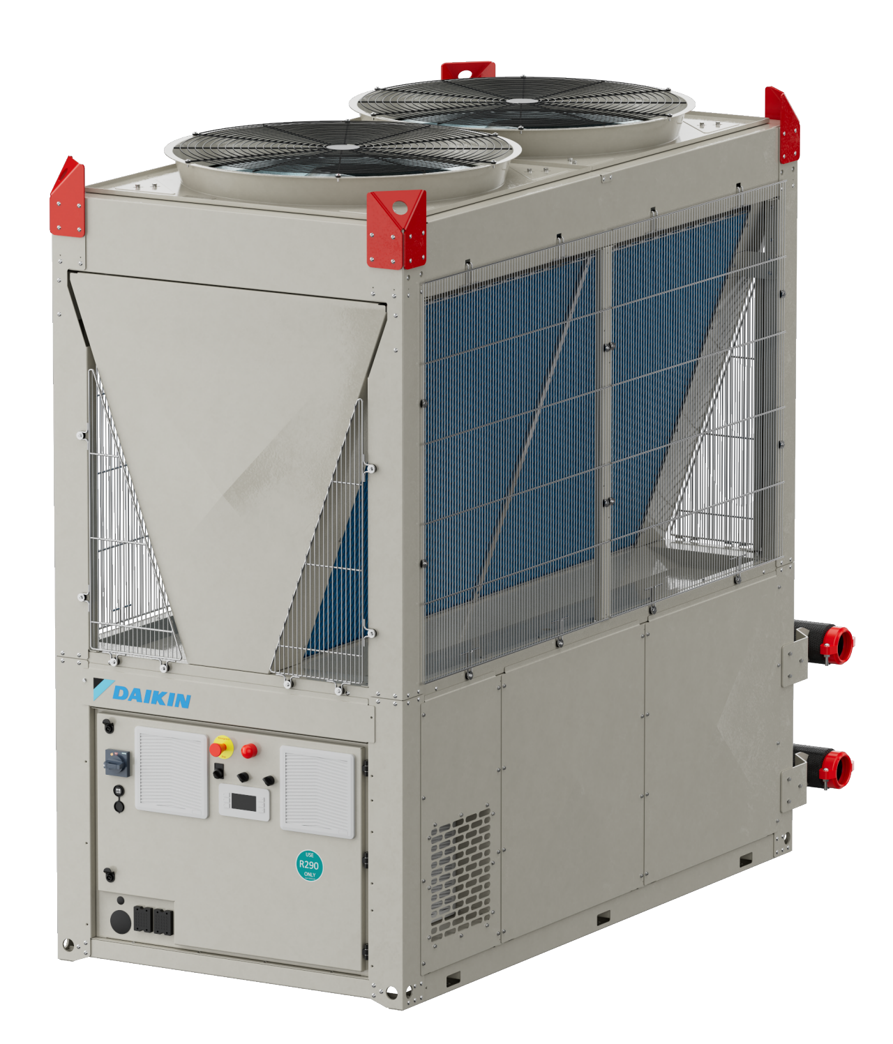 Daikin EWA(Y)K-CZ е чилер и топлинска пумпа со инвертор што работи со R-290 — природно разладно средство скоро без никаков потенцијал за глобално затоплување.
